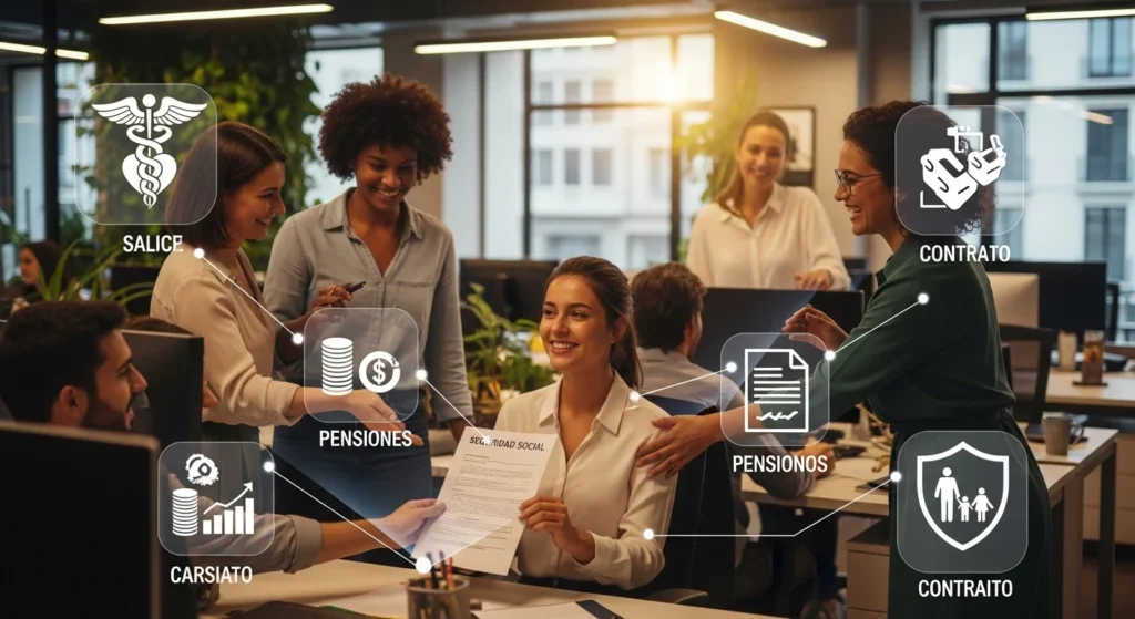 You gain access to healthcare, pensions, unemployment insurance, legal protections, and other social rights.