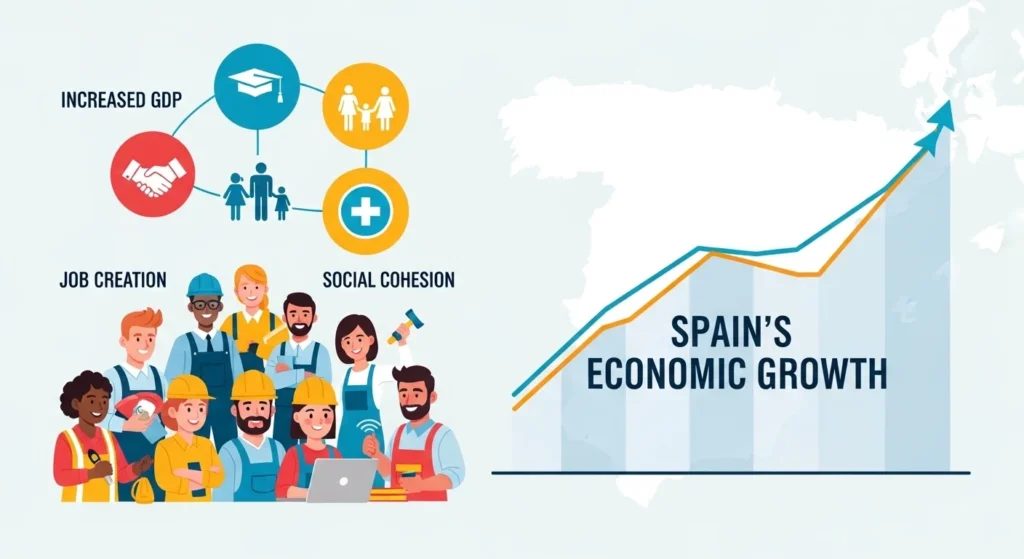 Spain faces demographic challenges, including an aging population and labor shortages in sectors such as agriculture, construction, hospitality, and caregiving. Migrant integration helps address these challenges.